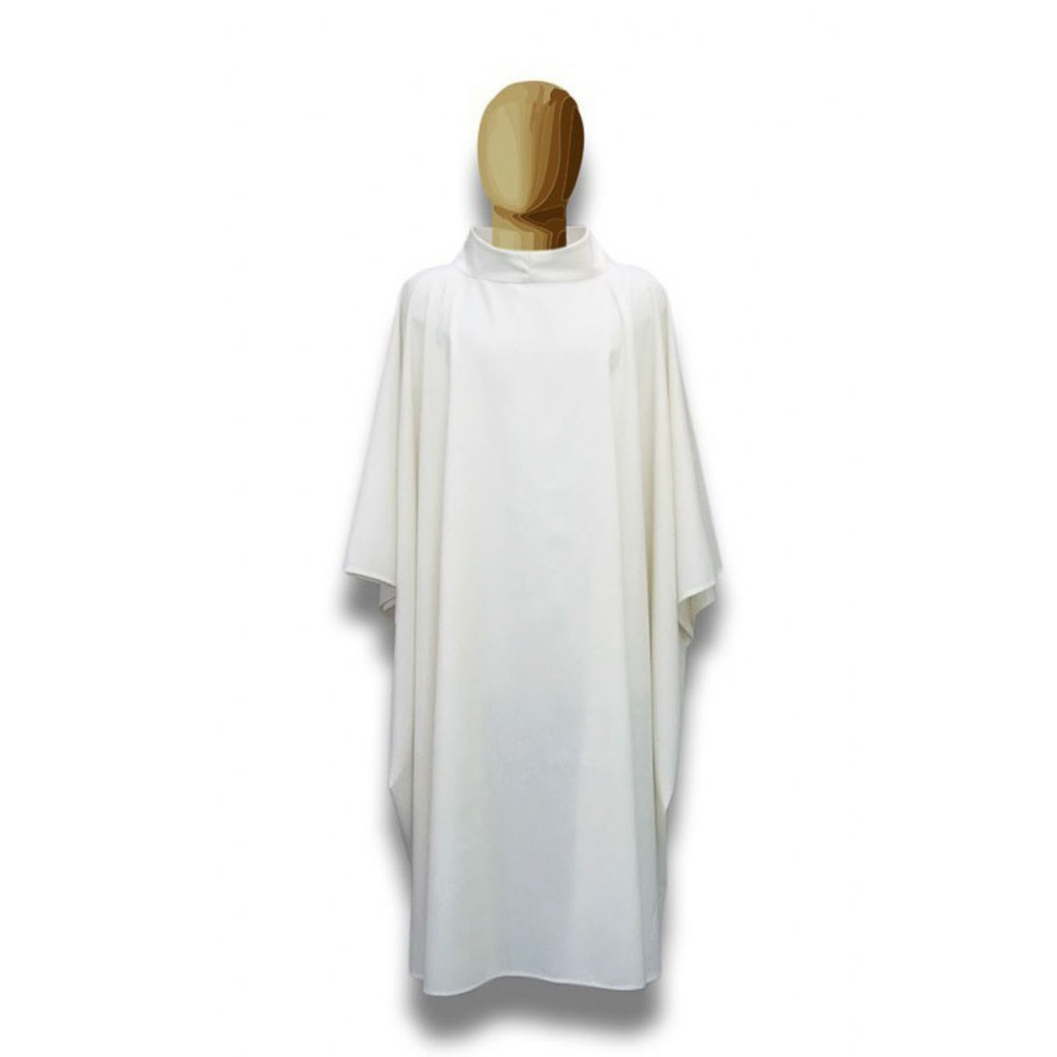 – Corte: casulla sin bordados, cuello redondo elevado.