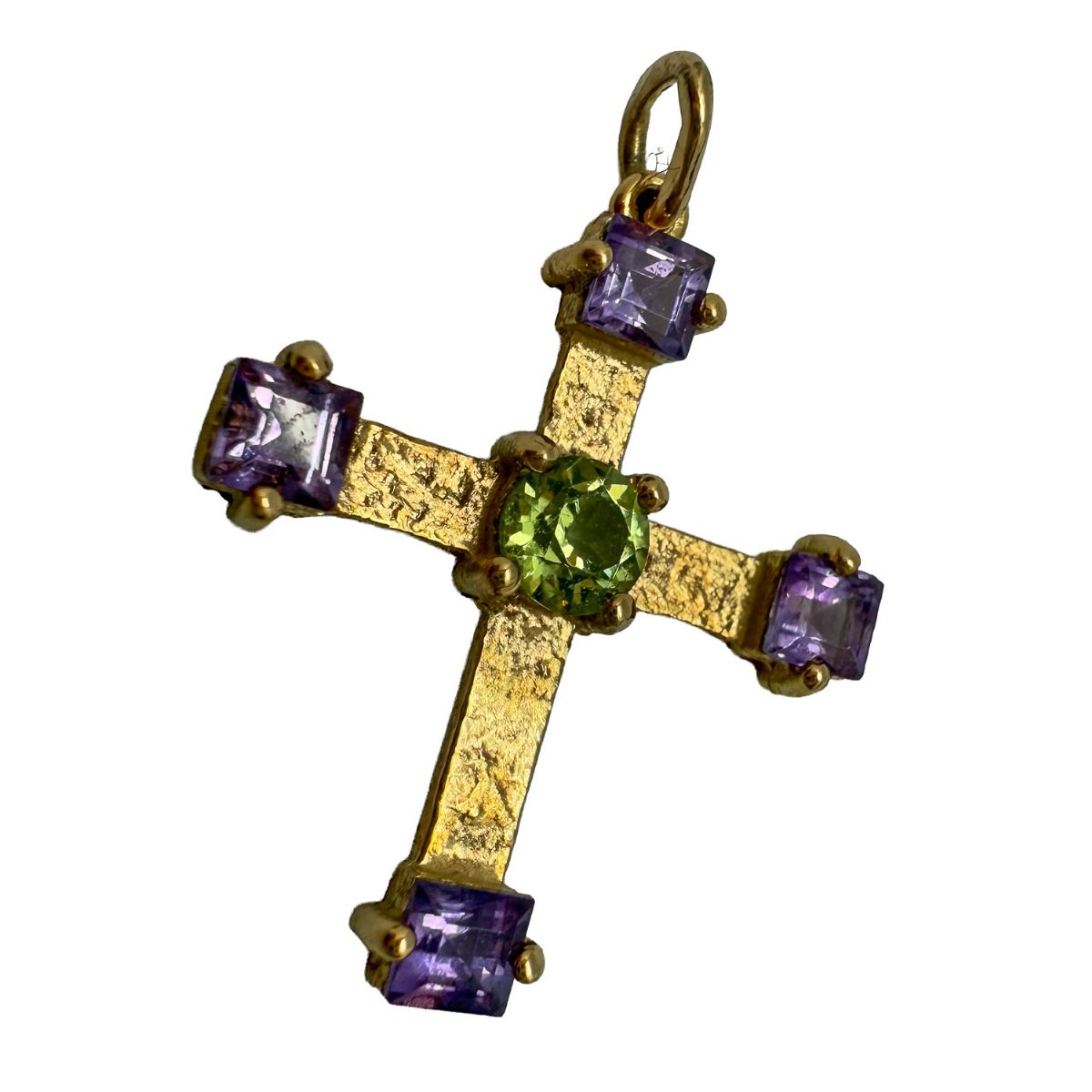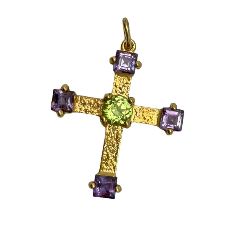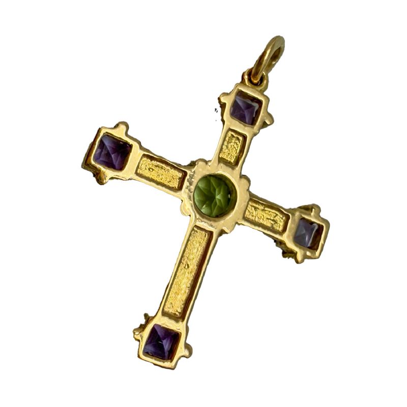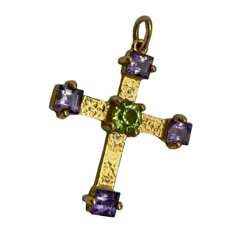 Se encuentra en la ficha del producto Cruz princesa oro olivina amatista con referencia 60D0031.