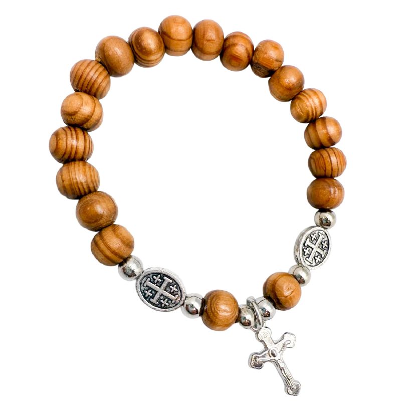 Se encuentra en la ficha del producto Pulseras madera de olivo cruz jerusalem surtidas con referencia JERUPULS1.