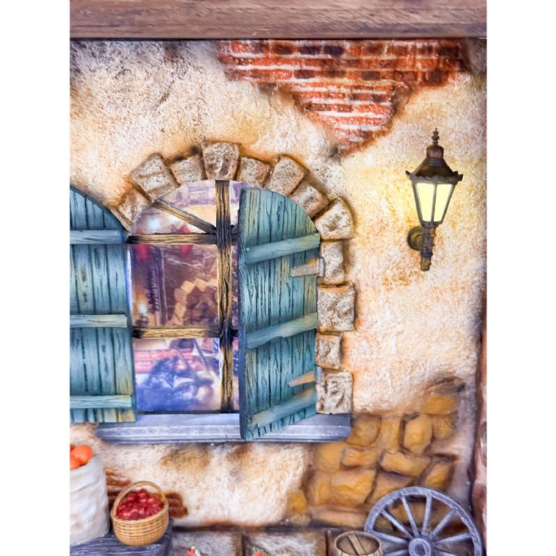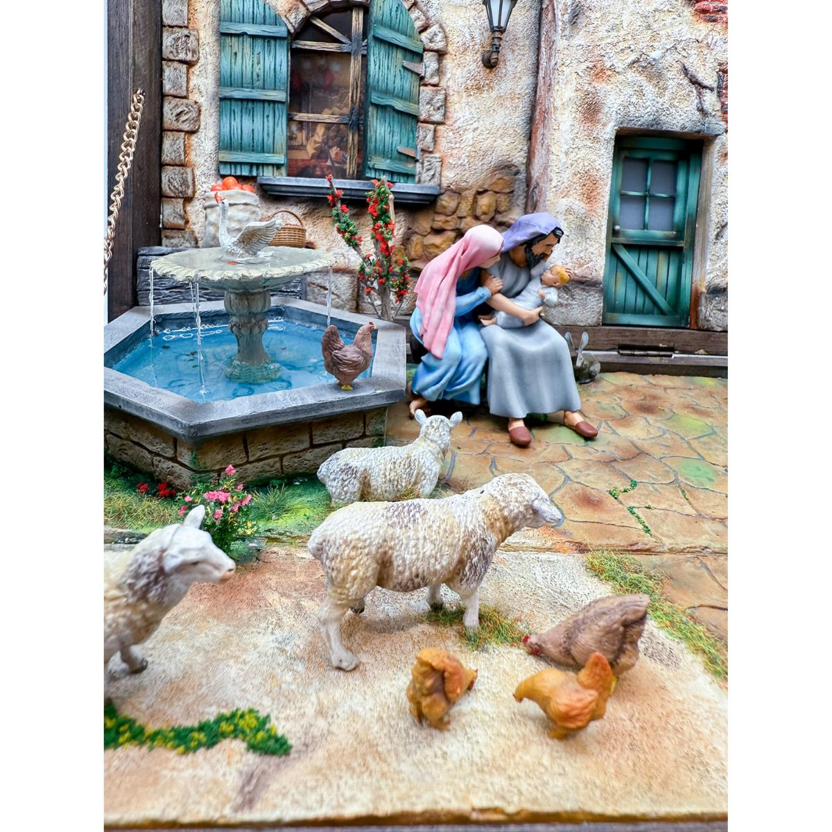 Las maquetas pueden presentarse sobre peana, dentro de fanales, vitrinas o estructuras con fondo escenográfico. Algunas incluyen iluminación LED cálida, que resalta las figuras y crea un ambiente íntimo y sereno. Los materiales empleados garantizan durabilidad, estabilidad y resistencia, incluso tras años de uso y exposición.