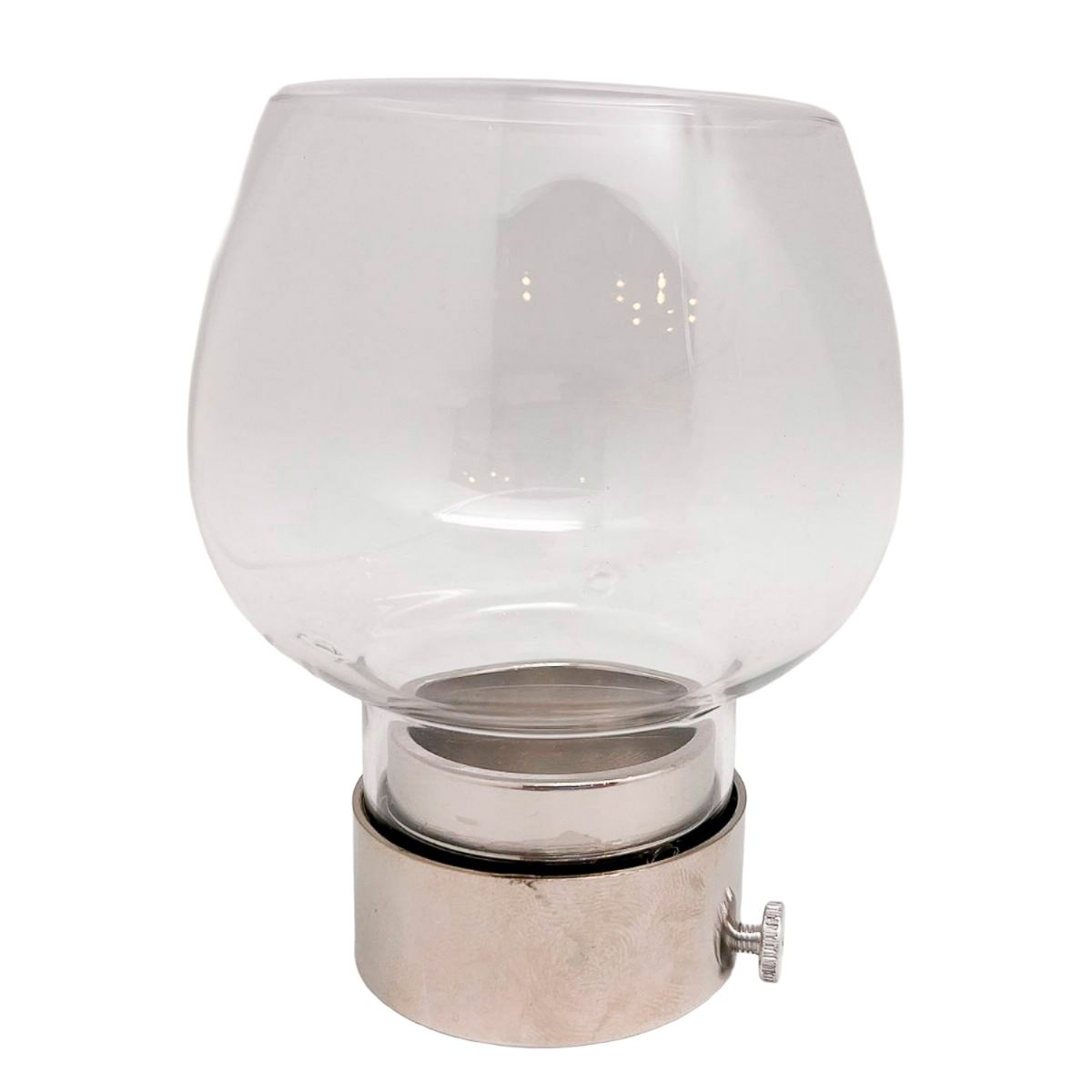 Recambio de paravientos / cristal protector para antorcha litúrgica, fabricado en cristal transparente con embocadura metálica niquelada.