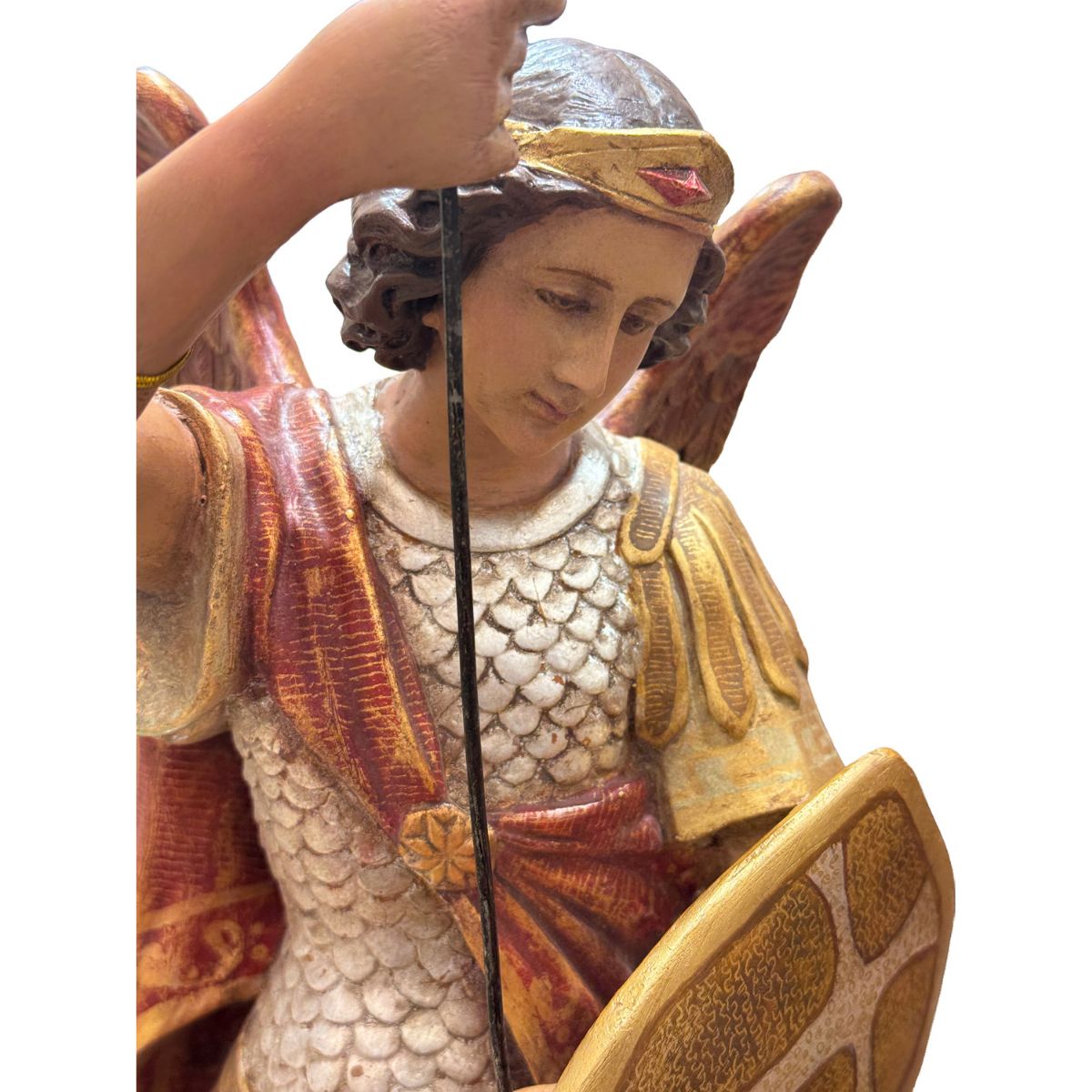 Se encuentra en la ficha del producto San Miguel pasta de madera 60 cm estofado oro - ojos de cristal con referencia EA-MIG100.