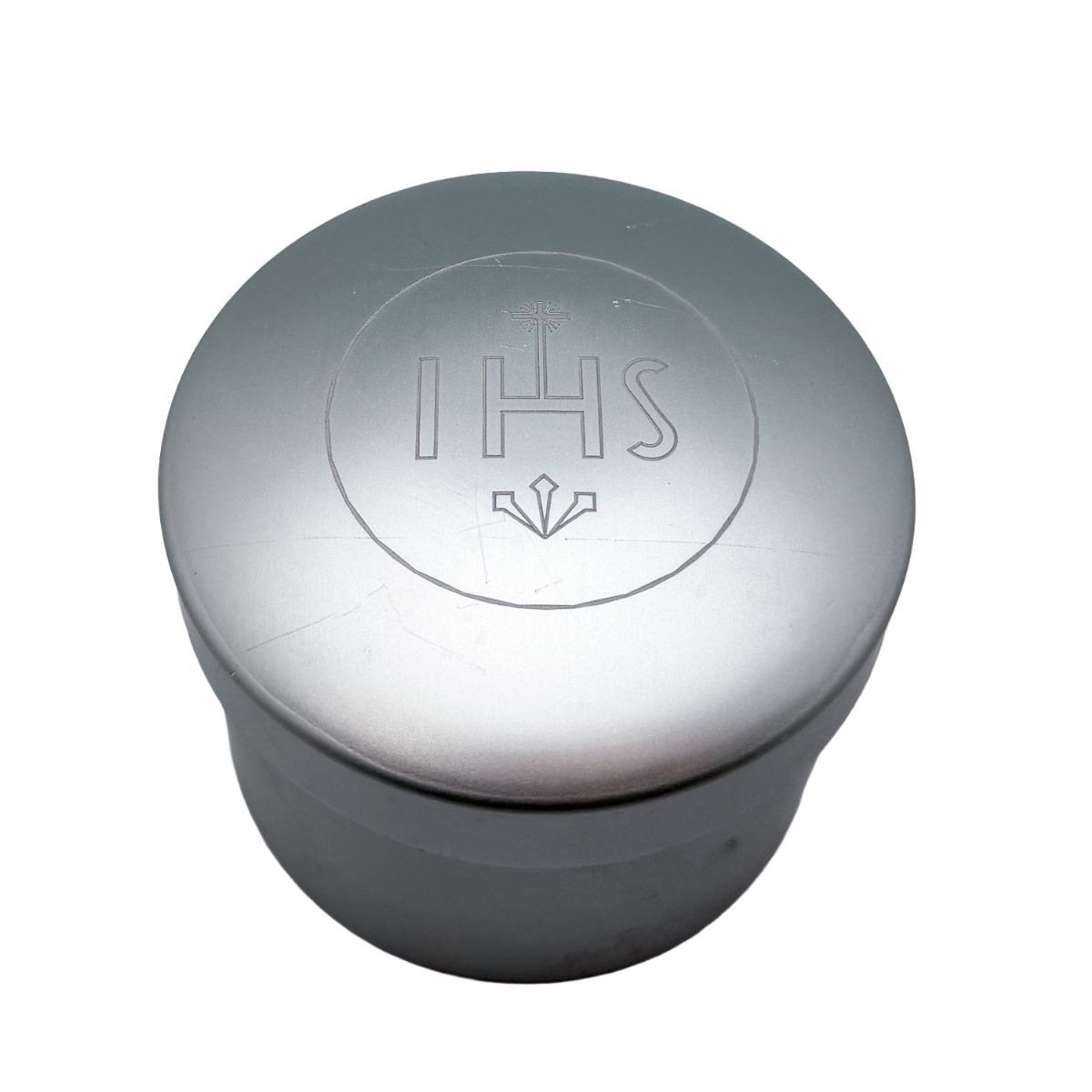 Caja para formas en aluminio con grabado IHS - Diámetro 10 cm
