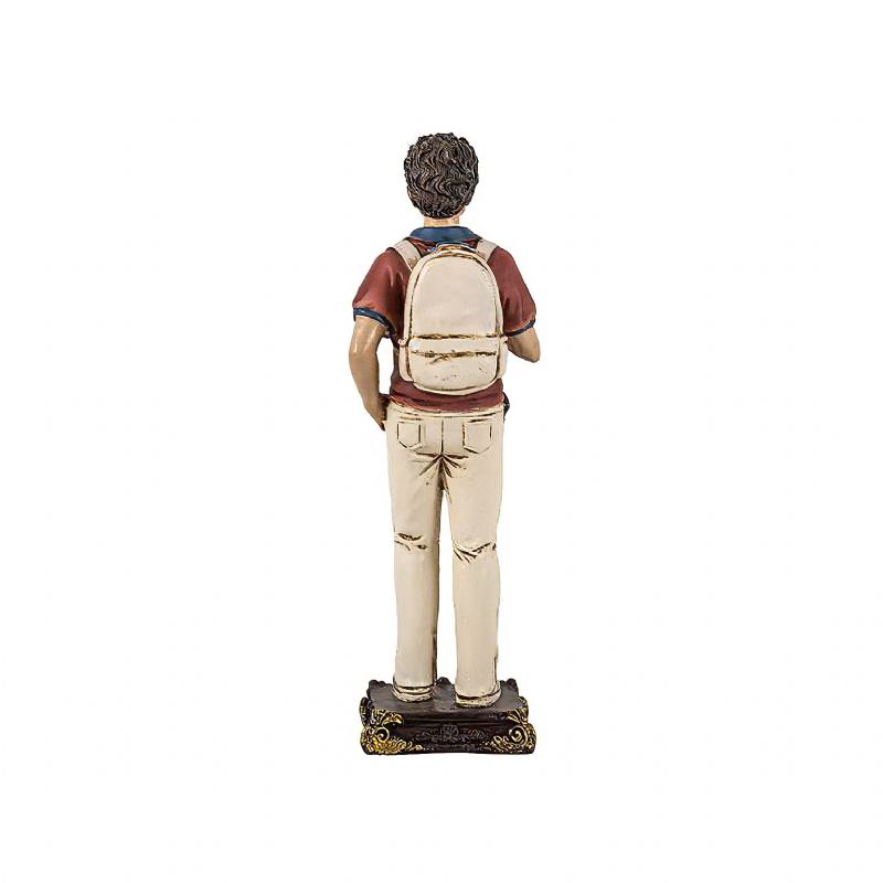 Figura del beato Carlo Acutis representado como un joven actual, con mochila y vestimenta cotidiana, reflejando su cercanía y testimonio de fe en el mundo moderno.