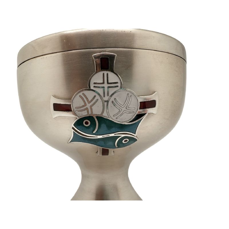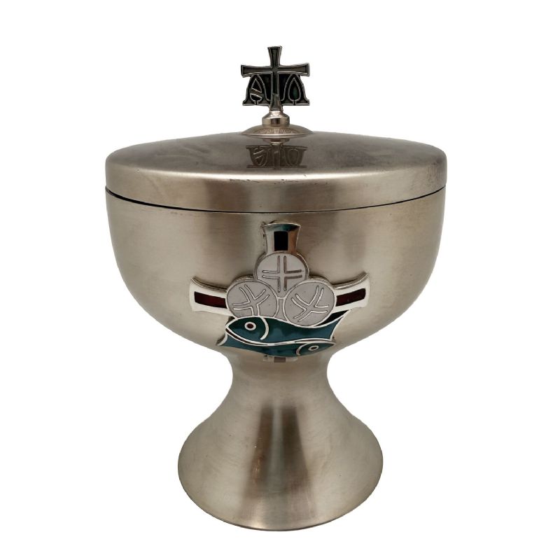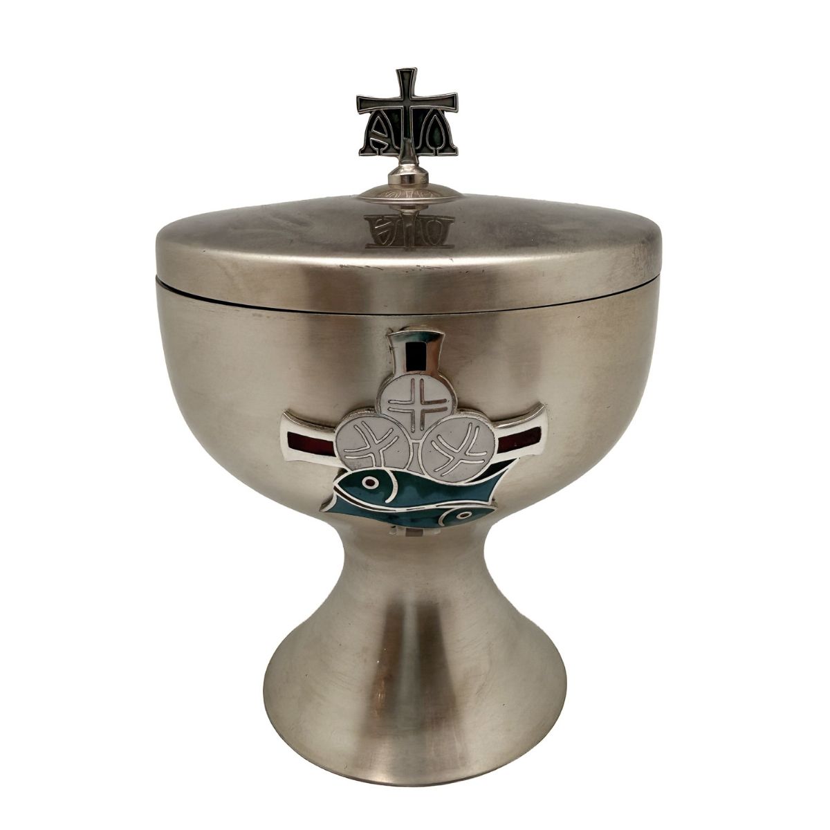 Copón plateado con esmaltes - 16 cm x 11,5 cm - Artesanía Sacra