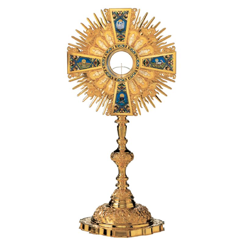 Indicada para exposición solemne del Santísimo Sacramento en templos de gran tamaño, adoración eucarística prolongada y celebraciones especiales.