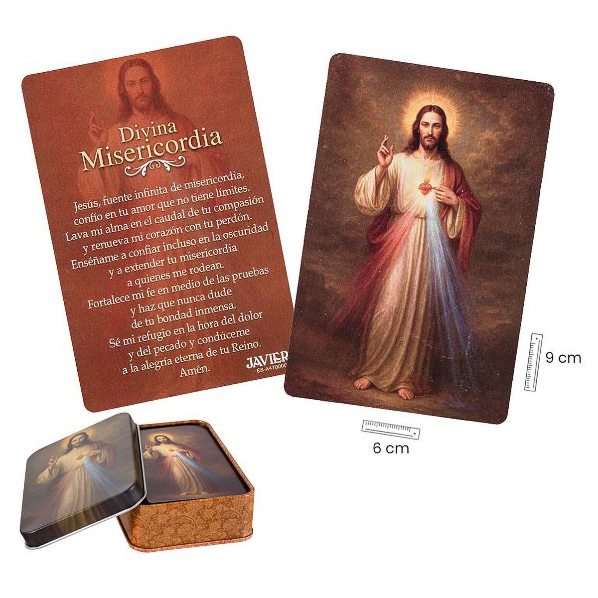 Se encuentra en la ficha del producto ESTAMPAS DIVINA MISERICORDIA 60 UDS CAJA METAL con referencia 25/960.