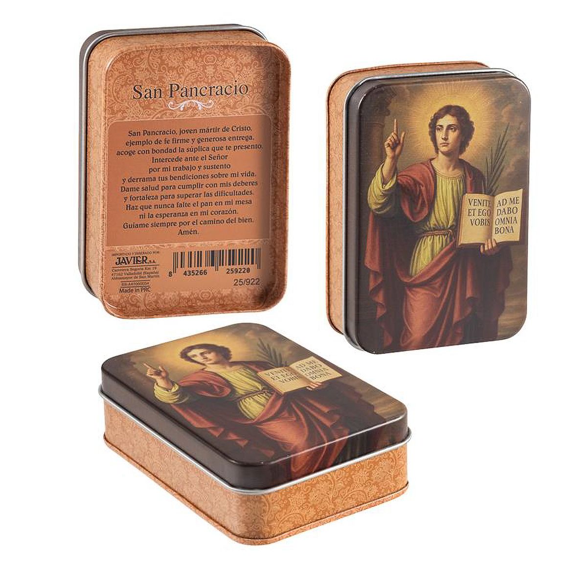 Se encuentra en la ficha del producto Estampas San Pancracio con caja metálica - 9 x 6 cm. con referencia 25/922.