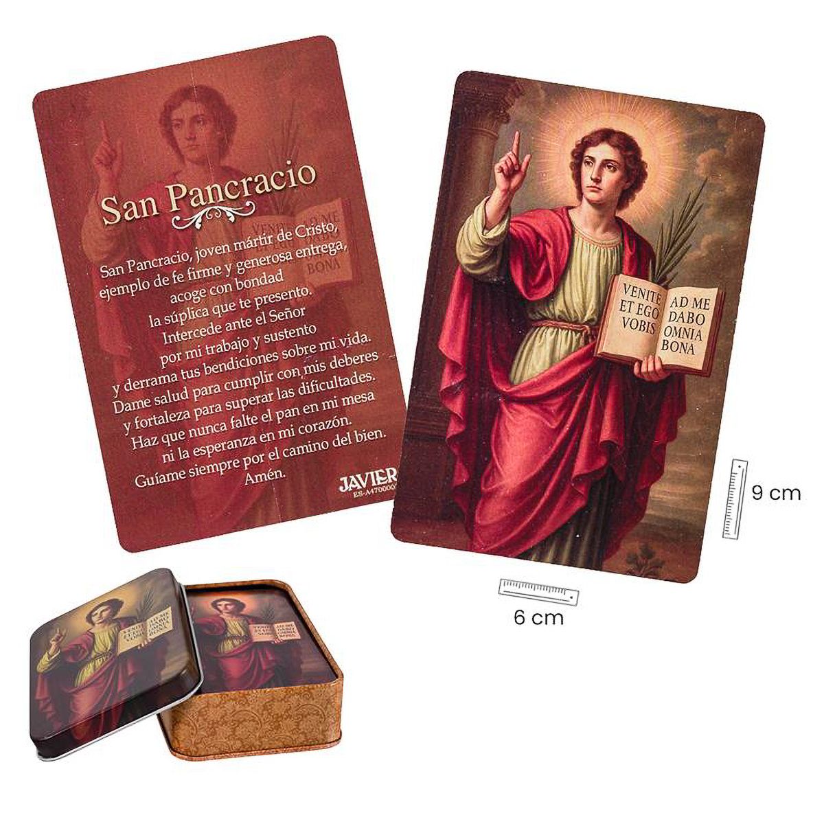 Estampas San Pancracio con caja metálica - 9 x 6 cm.