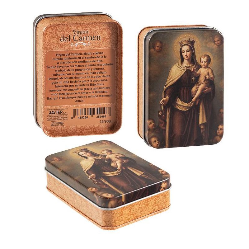 Se encuentra en la ficha del producto Estampas Virgen del Carmen con caja metálica - 9 x 6 cm. con referencia 25/900.
