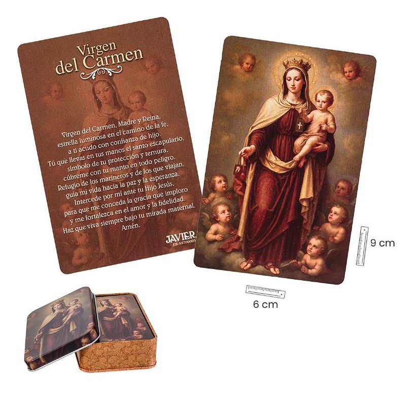 Estampas Virgen del Carmen con caja metálica - 9 x 6 cm.