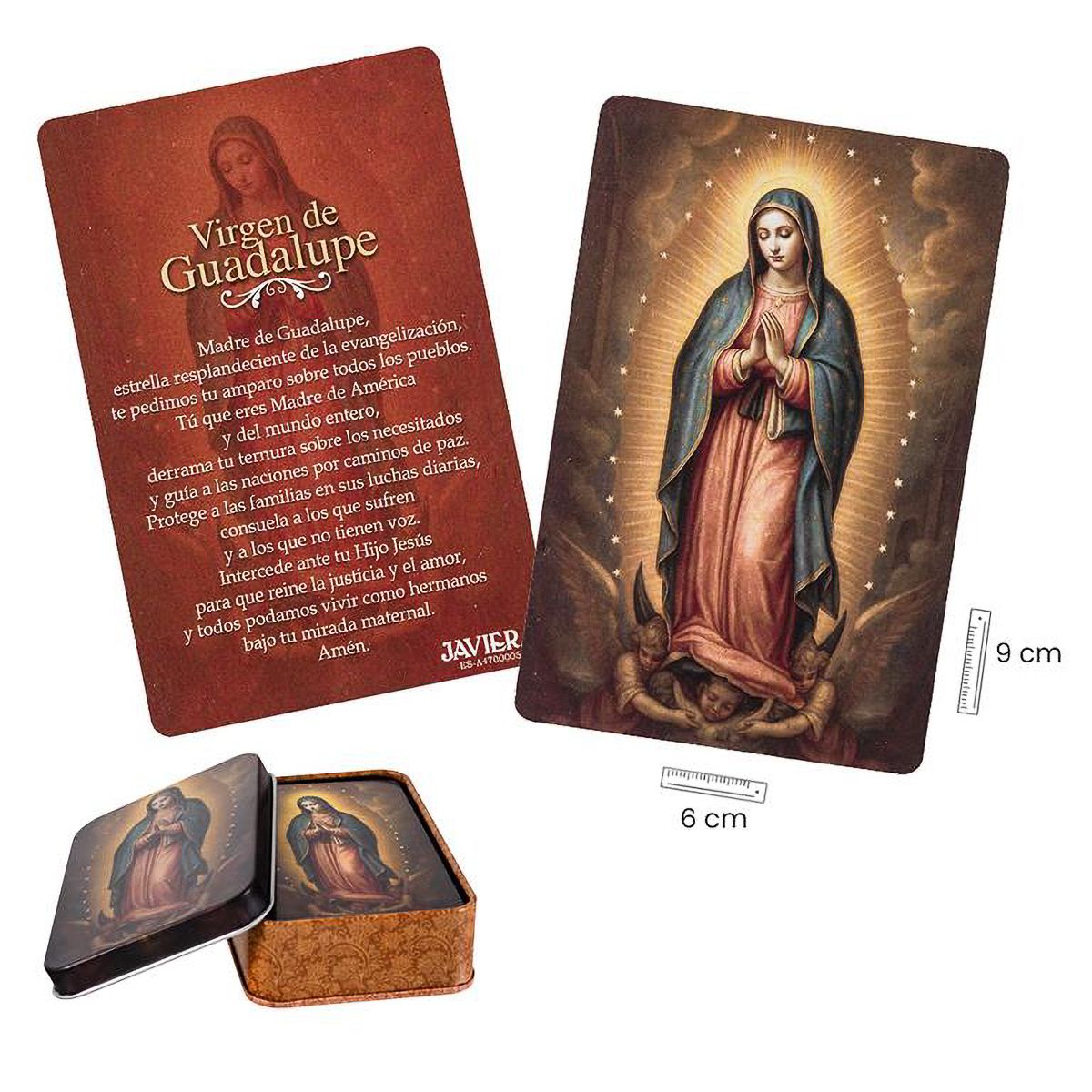Se encuentra en la ficha del producto Estampas Virgen de Guadalupe con caja metálica - 9 x 6 cm. con referencia 25/902.