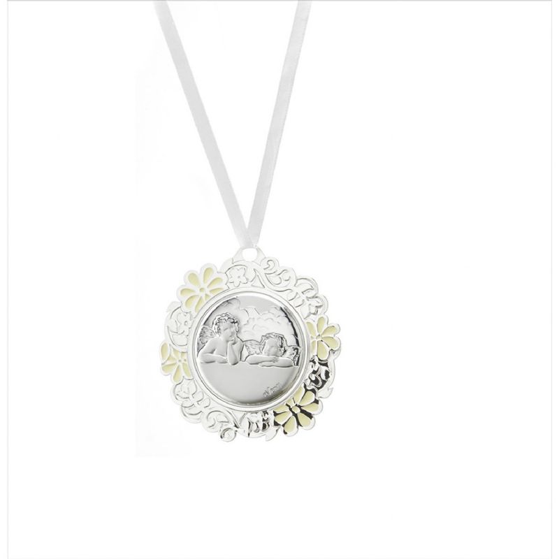 Medallón metal ángeles blanco 8 cm