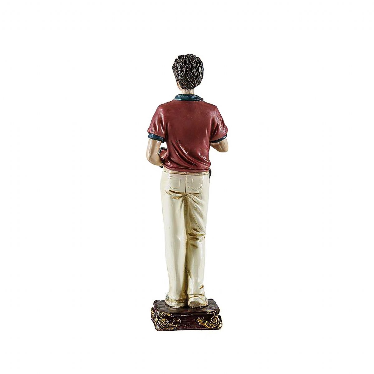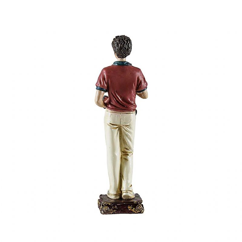Fabricada en resina de poliéster, con un modelado cuidado y policromía en tonos suaves y naturales.