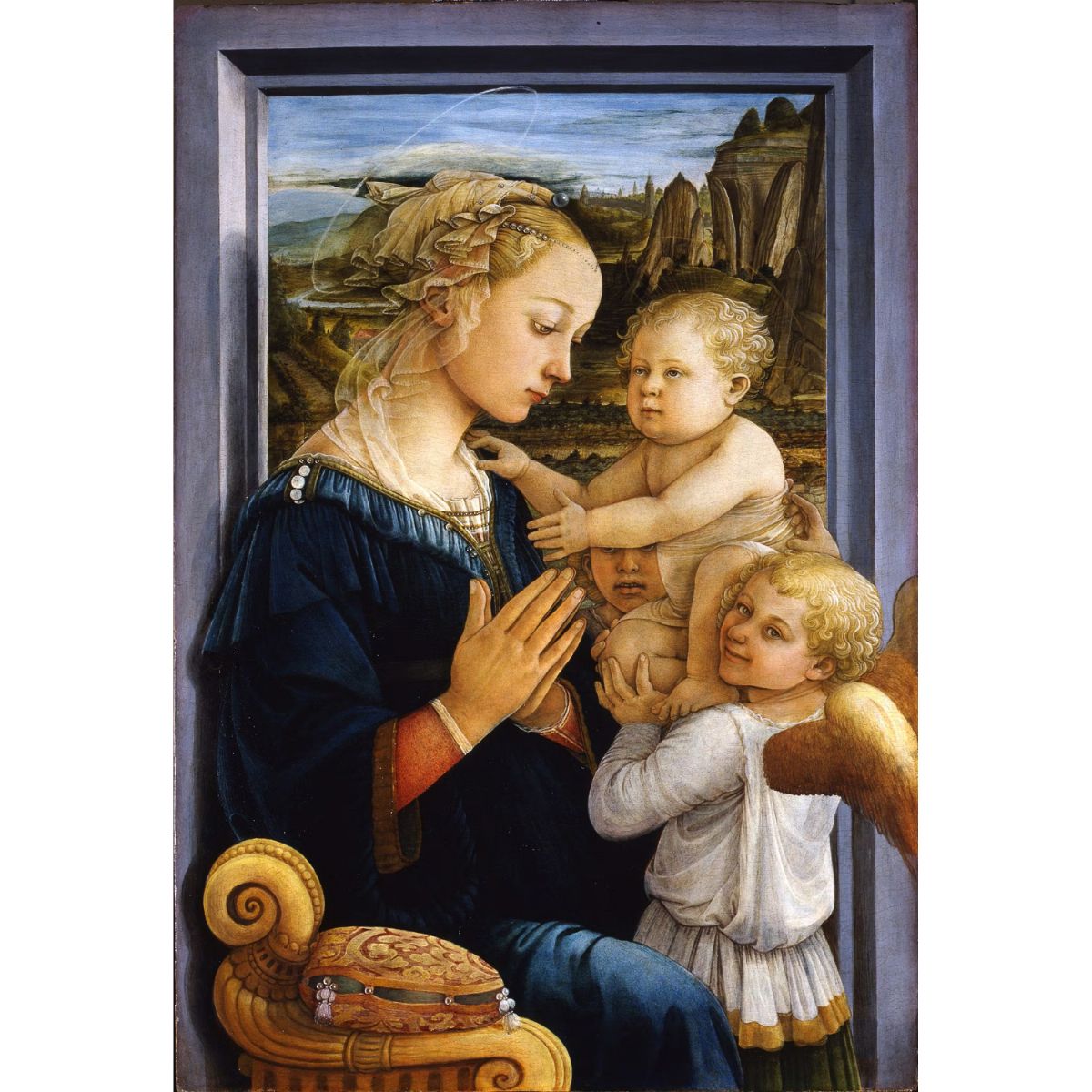 Tríptico Virgen con el Niño en madera con pan...