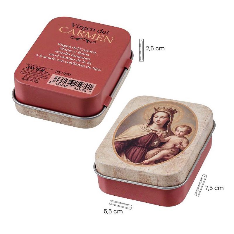 Se encuentra en la ficha del producto VIRGEN DEL CARMEN 5cm EN LATA con referencia 25/970.