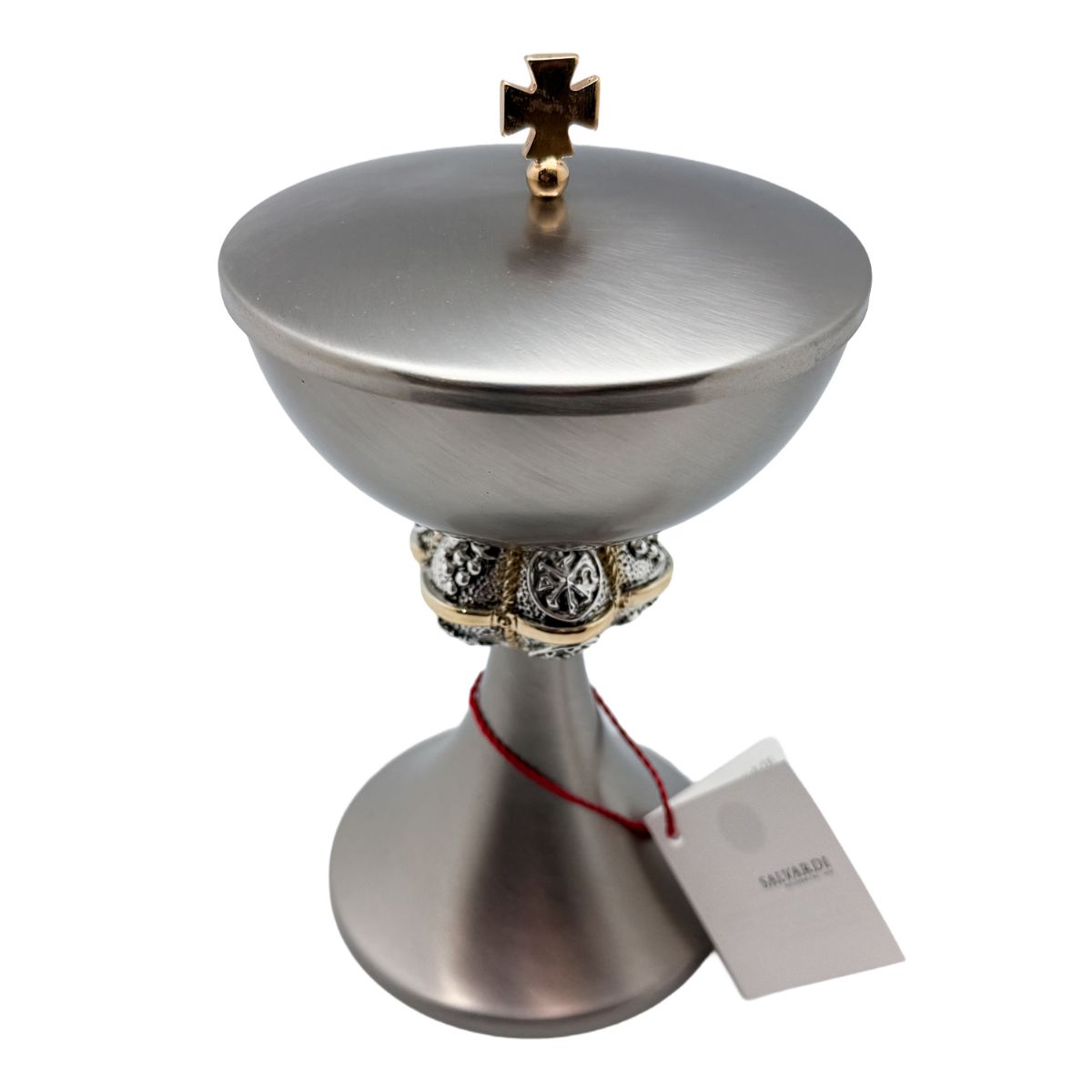 Copón litúrgico de líneas sobrias y proporciones equilibradas, pensado para la reserva eucarística y el uso habitual en el altar.