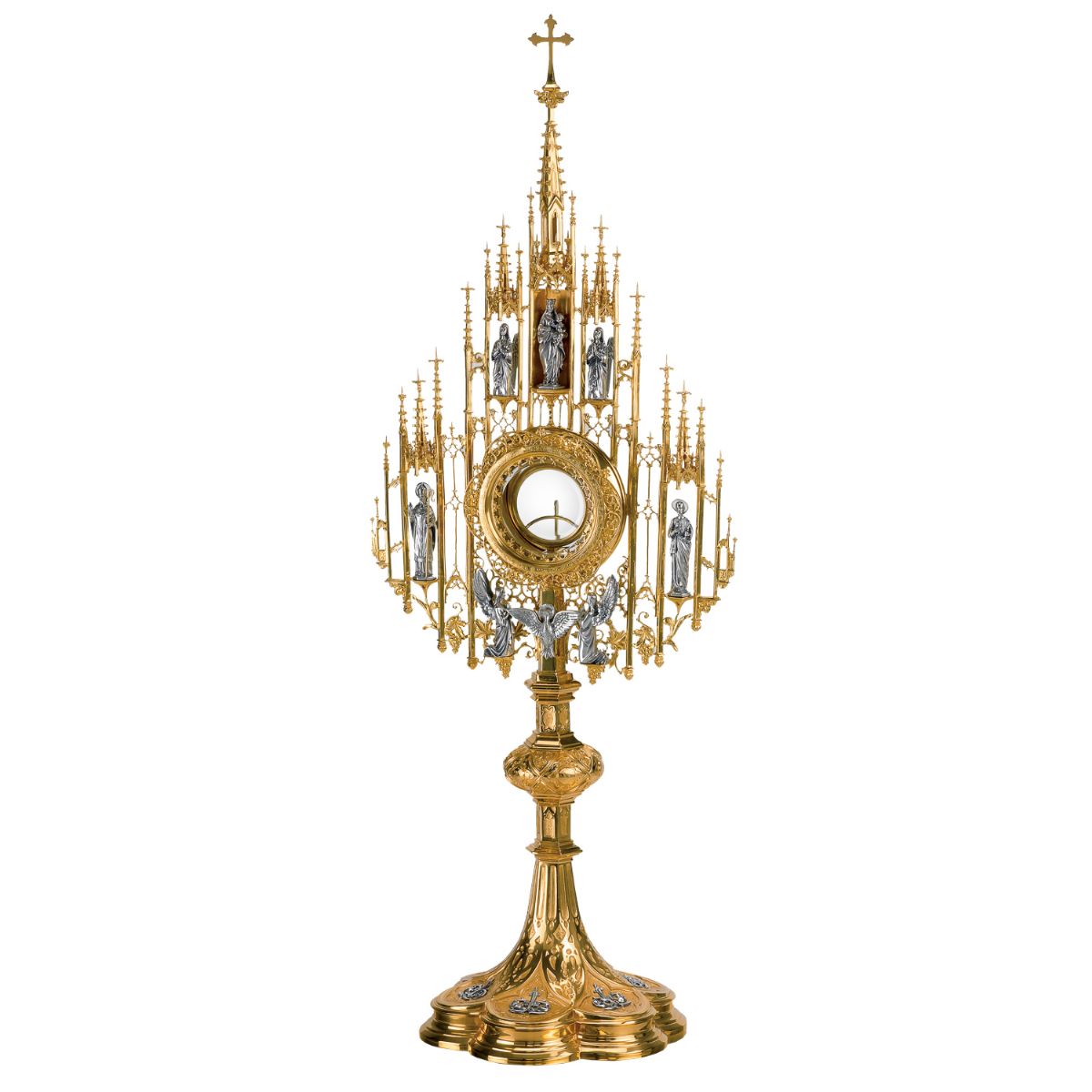 Se encuentra en la ficha del producto Custodia barroca en plata de ley sobredorada - 70 cm de altura - 36 cm de ancho - Artesanía Sacra con referencia 7231.