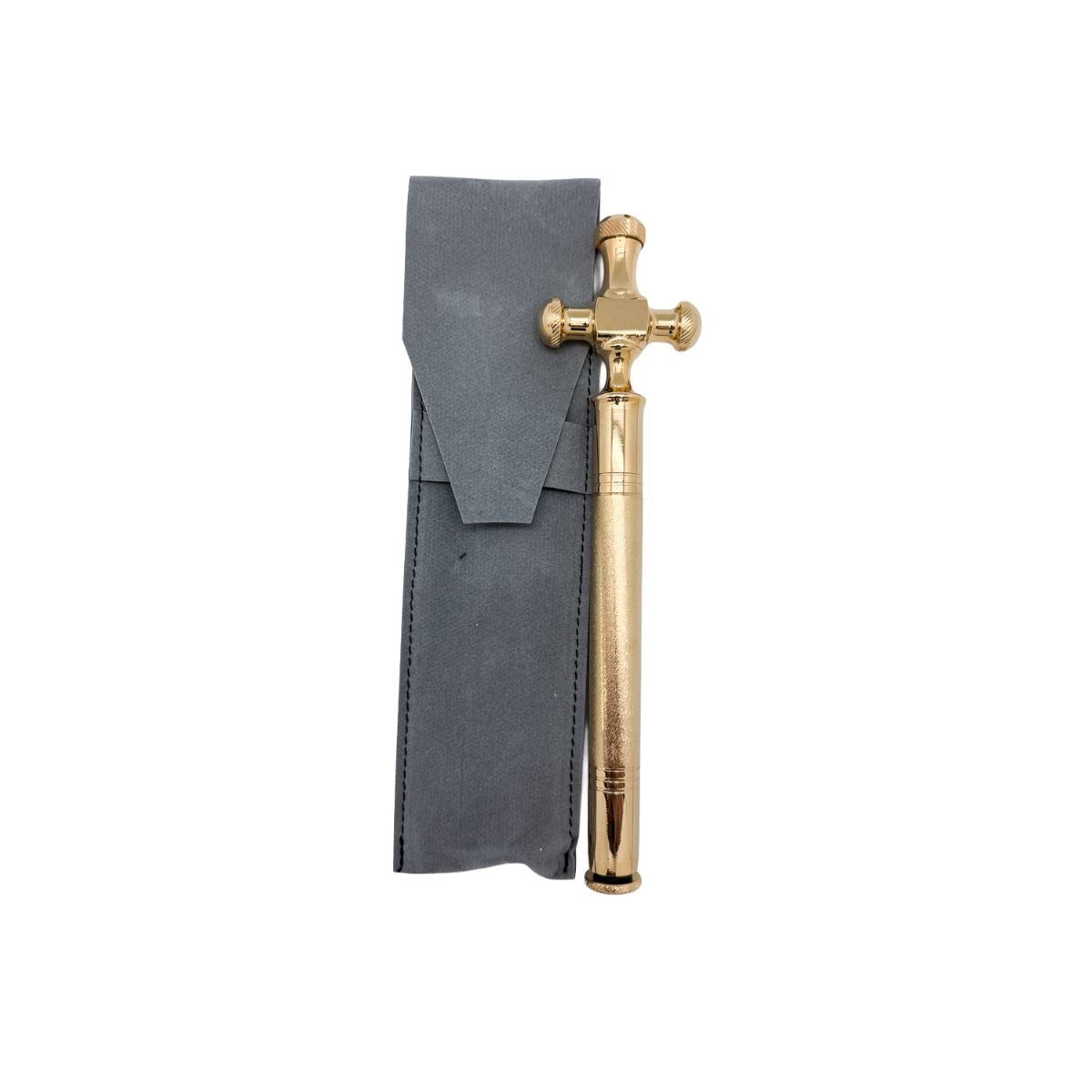 La cruz superior, integrada en el propio cuerpo del hisopo, refuerza su carácter simbólico y facilita una correcta sujeción durante el rito de aspersión.