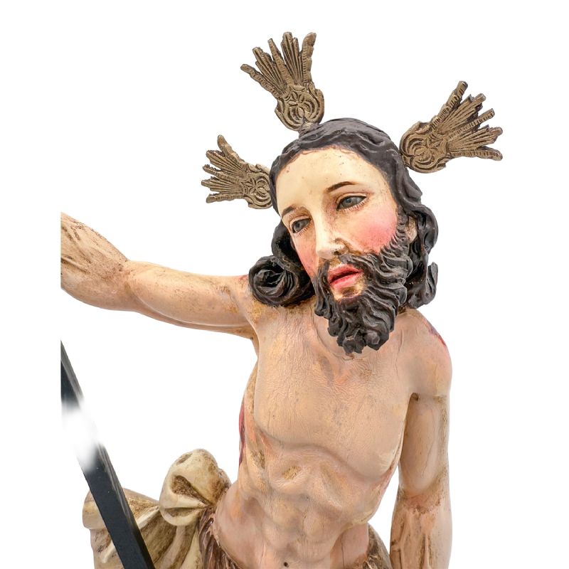 Se encuentra en la ficha del producto Jesús Resucitado - talla de madera - 58 x 25 x 17 cm con referencia EA-JESUS-7.