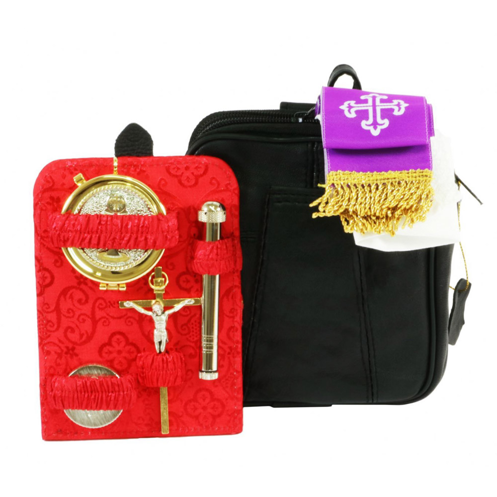 Los estuches eucarísticos más compactos están diseñados para la comunión de los enfermos e incluyen píxide, estola pequeña, corporal y agua bendita, en formato portátil y ligero. Los maletines completos se destinan a sacerdotes que realizan visitas pastorales o celebraciones fuera de la parroquia, ofreciendo todo lo necesario en un solo conjunto.