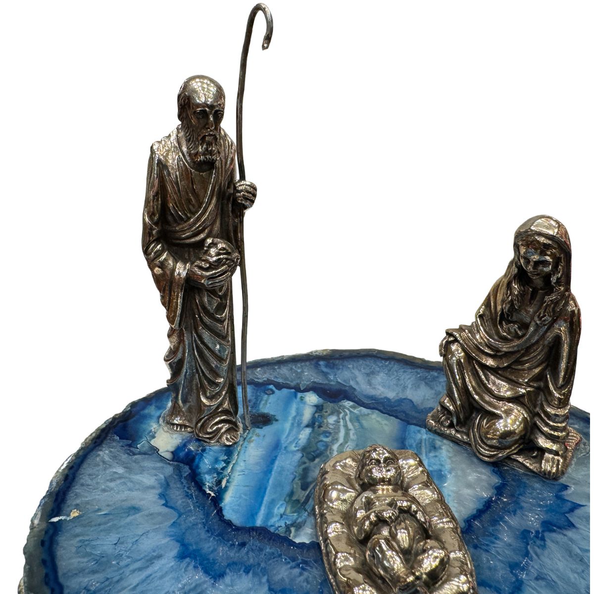 Misterio en piedra ágata con figuras en plata de ley - Altura 10 cm