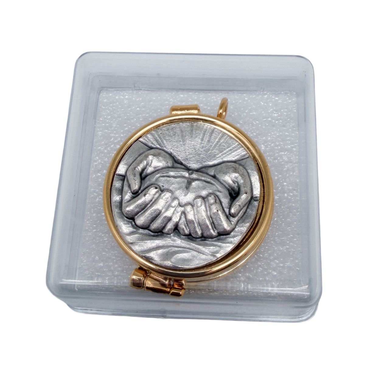 Llegó perfectamente protegido. El símbolo de las manos transmite mucho, ideal para comunión a enfermos..