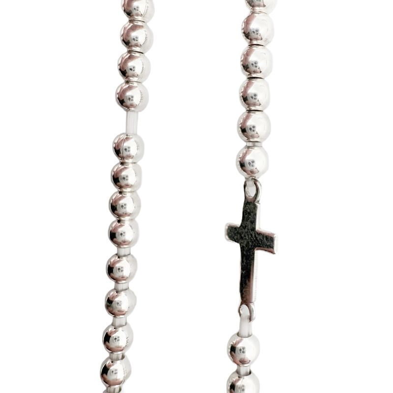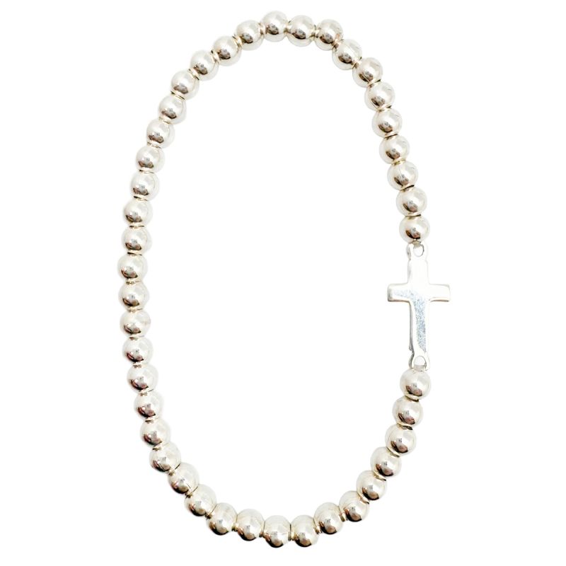 Pulsera elástica de plata con bolas y cruz - 5,3 mm