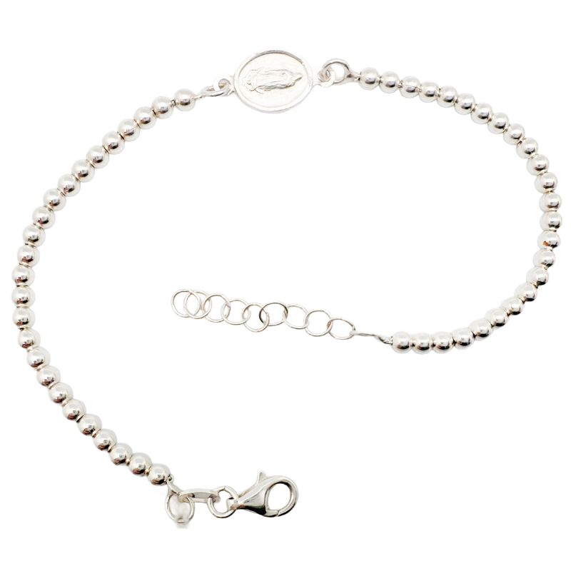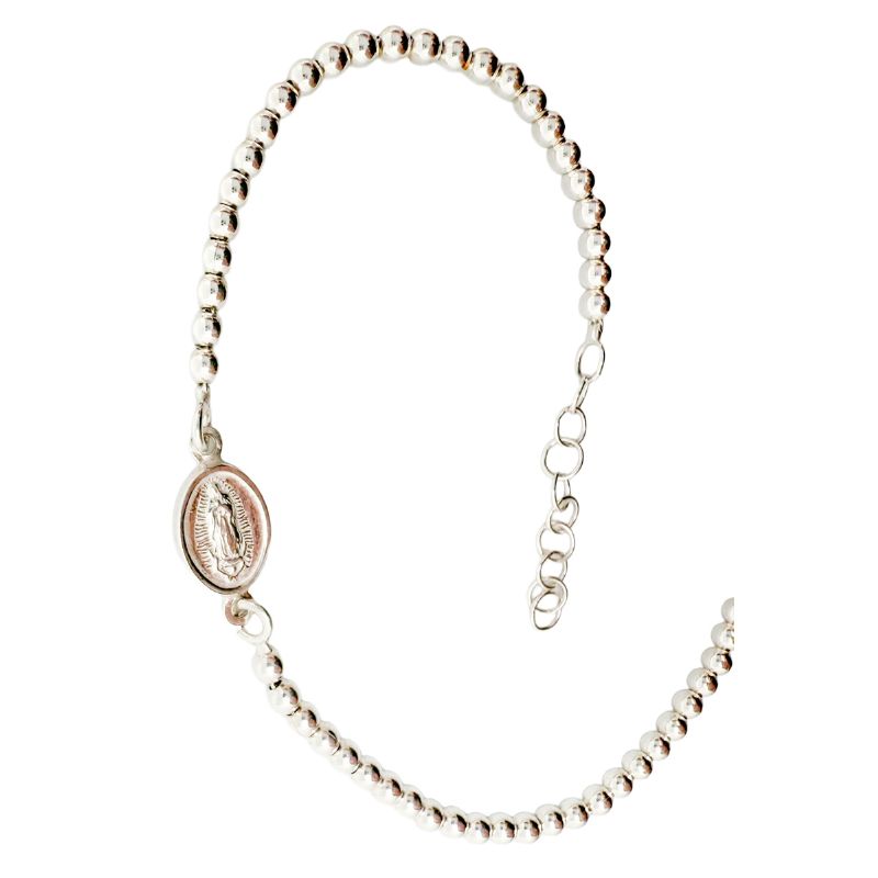 Pulsera de plata bolas 3 mm con medalla Virgen de Guadalupe - 21 cm
