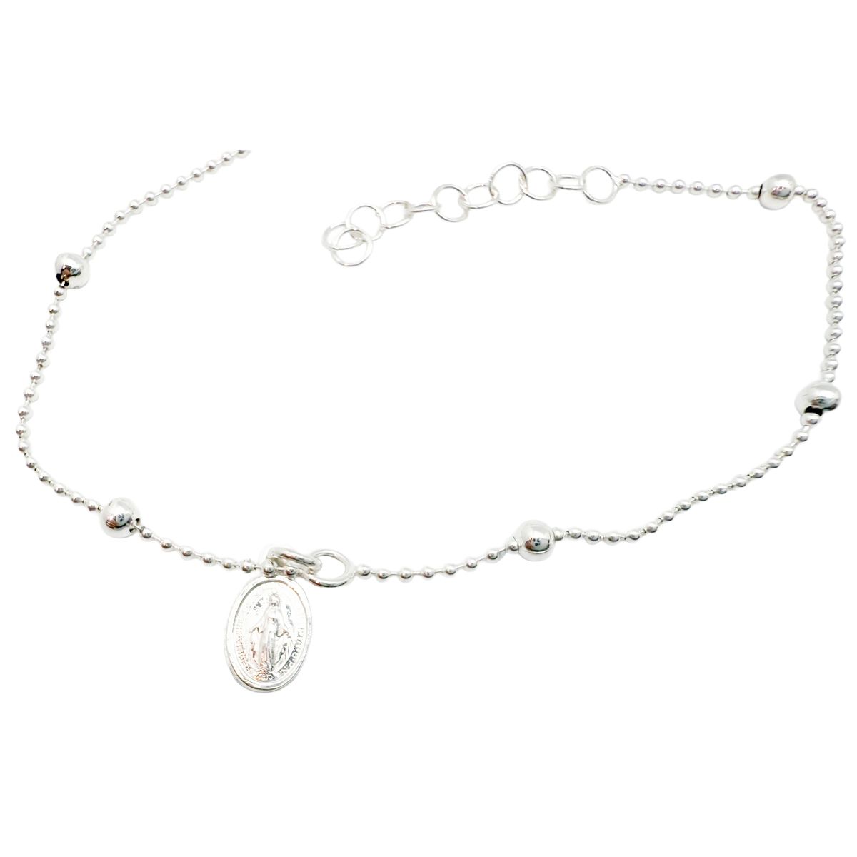 Pulsera religiosa fina y elegante, protagonizada por una delicada cadena de bolitas y una medalla colgante de San Benito.