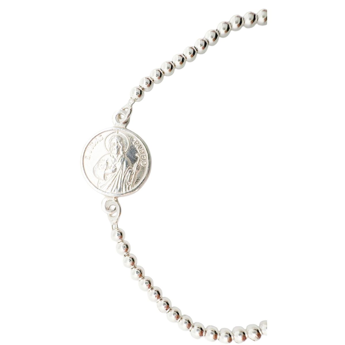 Pulsera de plata de ley bolas 3 mm con medalla de San Judas - 20 cm