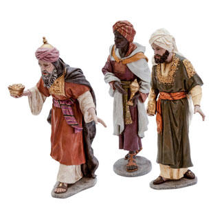 Los Reyes Magos son figuras imprescindibles en el belén. Se representan de pie, a camello, adorando o ofreciendo sus dones.En El Ángel Arte Sacro disponemos de Reyes en barro, resina, madera, pasta de madera y porcelana, elaborados por artesanos españoles e italianos. Para todas las escalas y estilos.