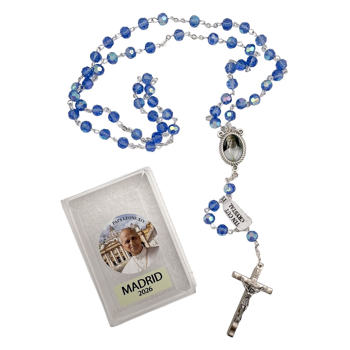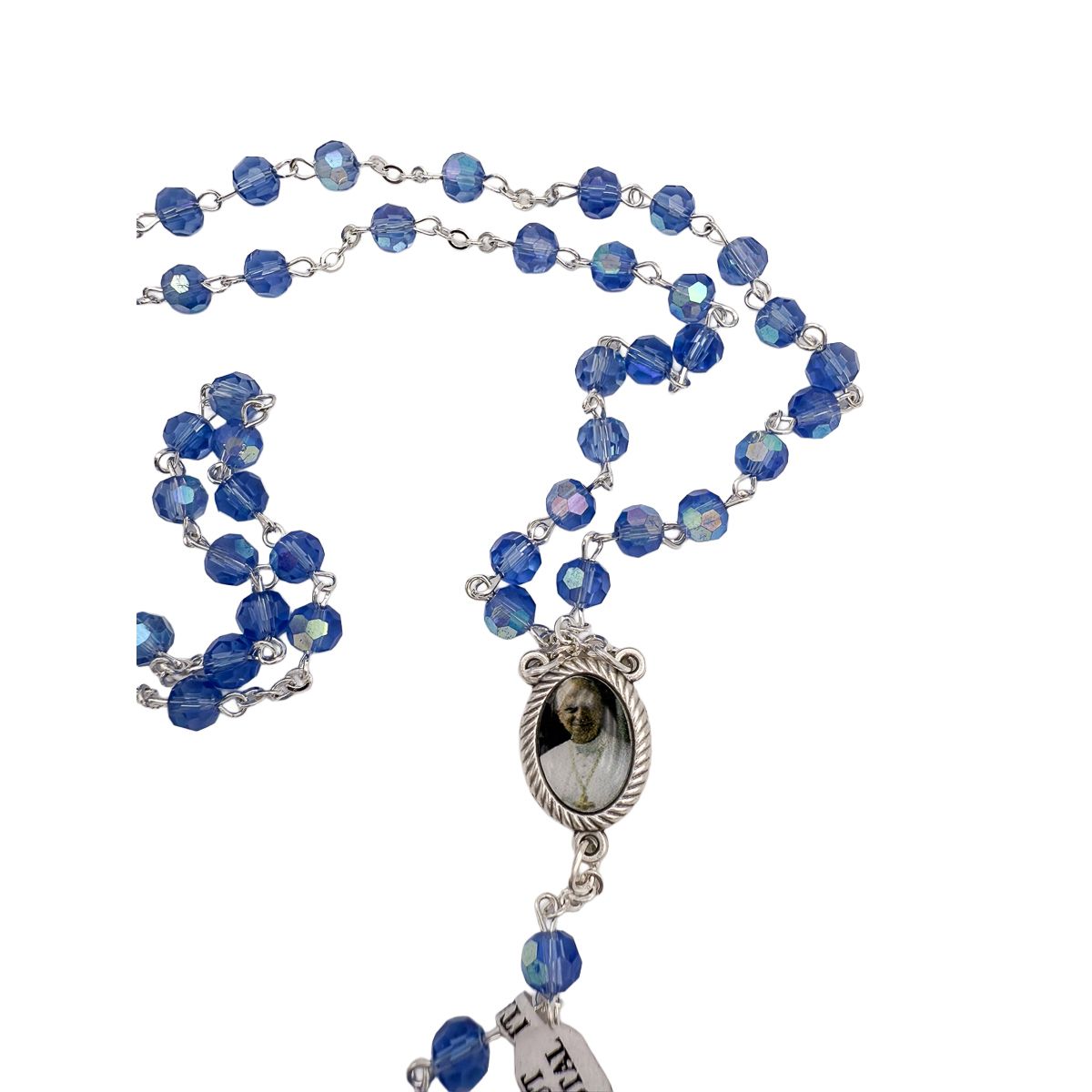 Rosario de cristal facetado azul Papa León XIV - 6 mm