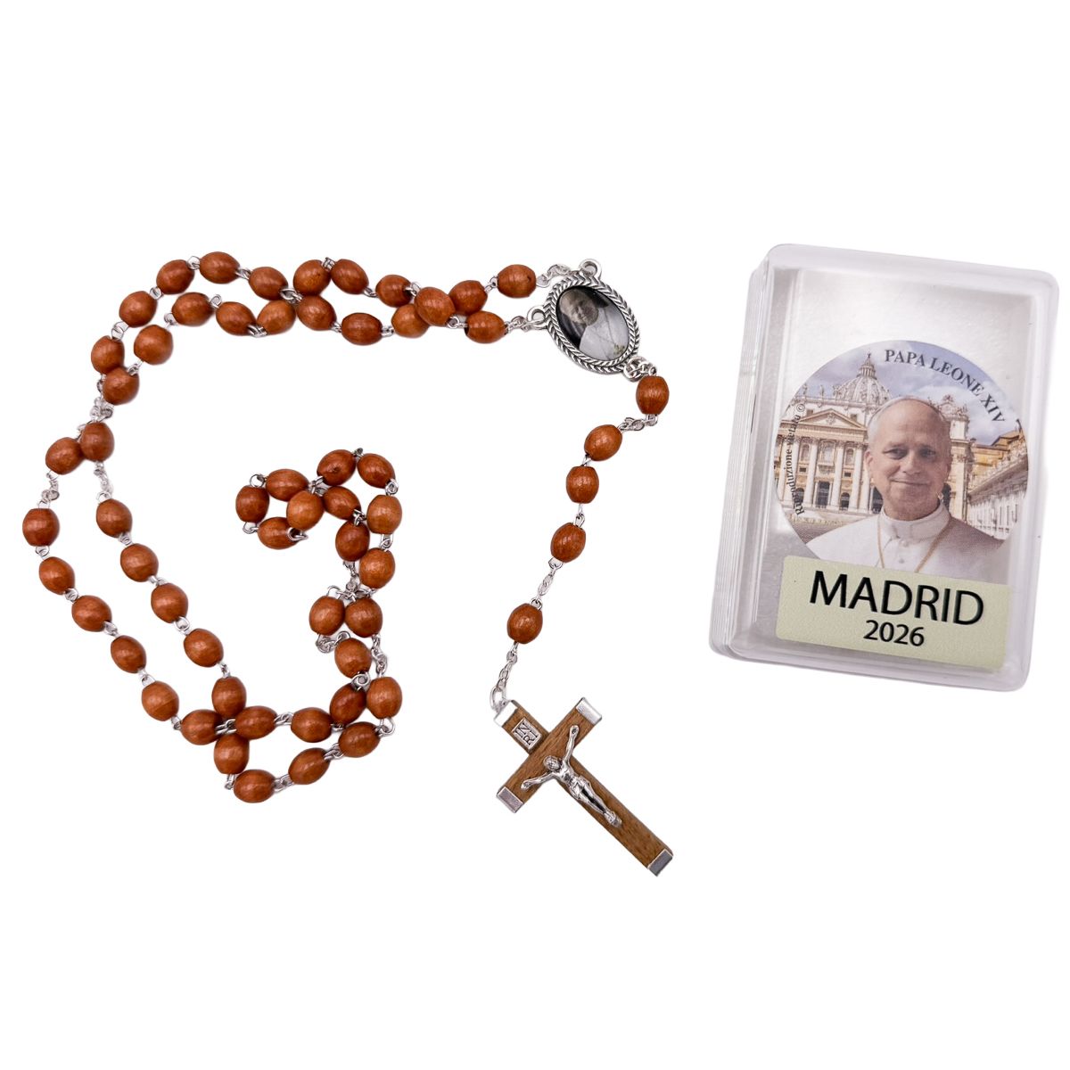 Se encuentra en la ficha del producto Rosario de madera ovalada Papa León XIV - Cuentas 8 x 7 mm con referencia R23-1N-P.
