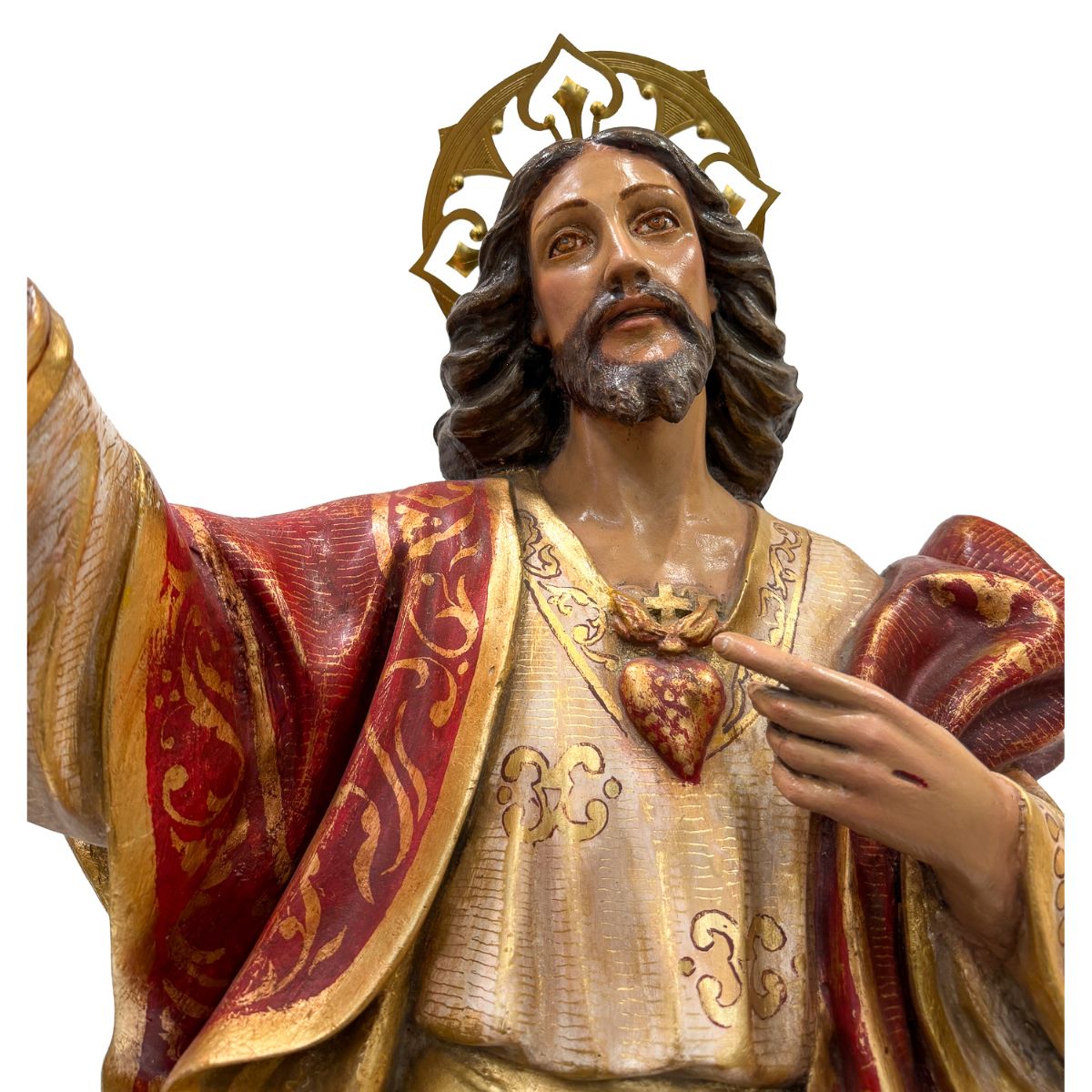 Sagrado Corazón de Jesús barroco - Pasta de madera policromada y dorada - Figura de 100 cm