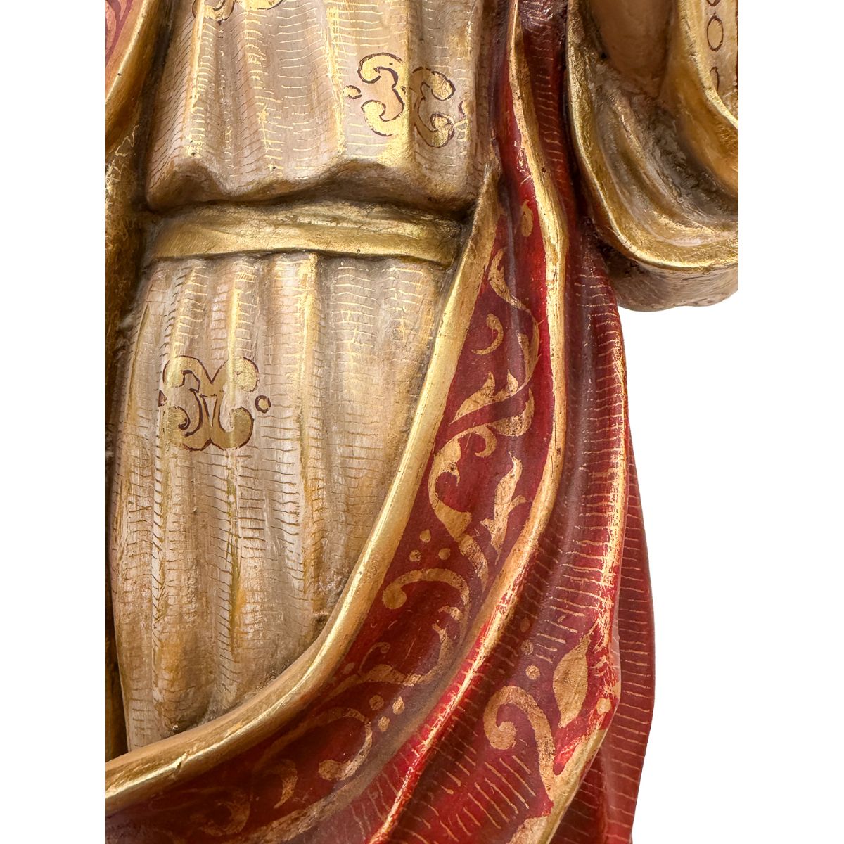 Figura realizada en pasta de madera, trabajada por artesanos españoles especializados en imaginería religiosa.