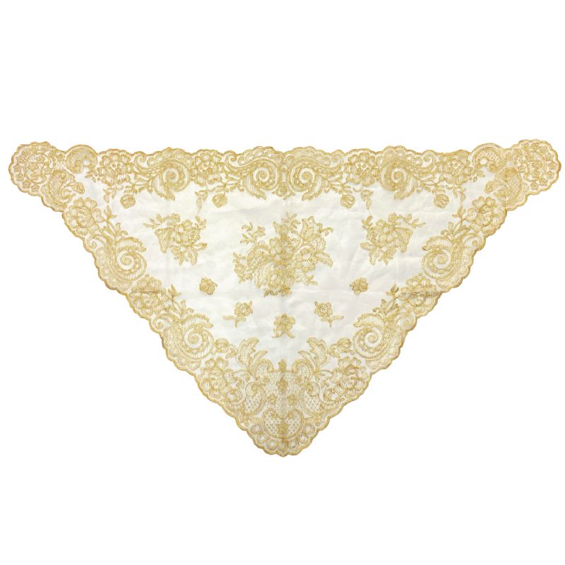 Elegante velo de iglesia confeccionado artesanalmente por talleres españoles, pensado para aportar distinción y recogimiento en ceremonias y actos litúrgicos.